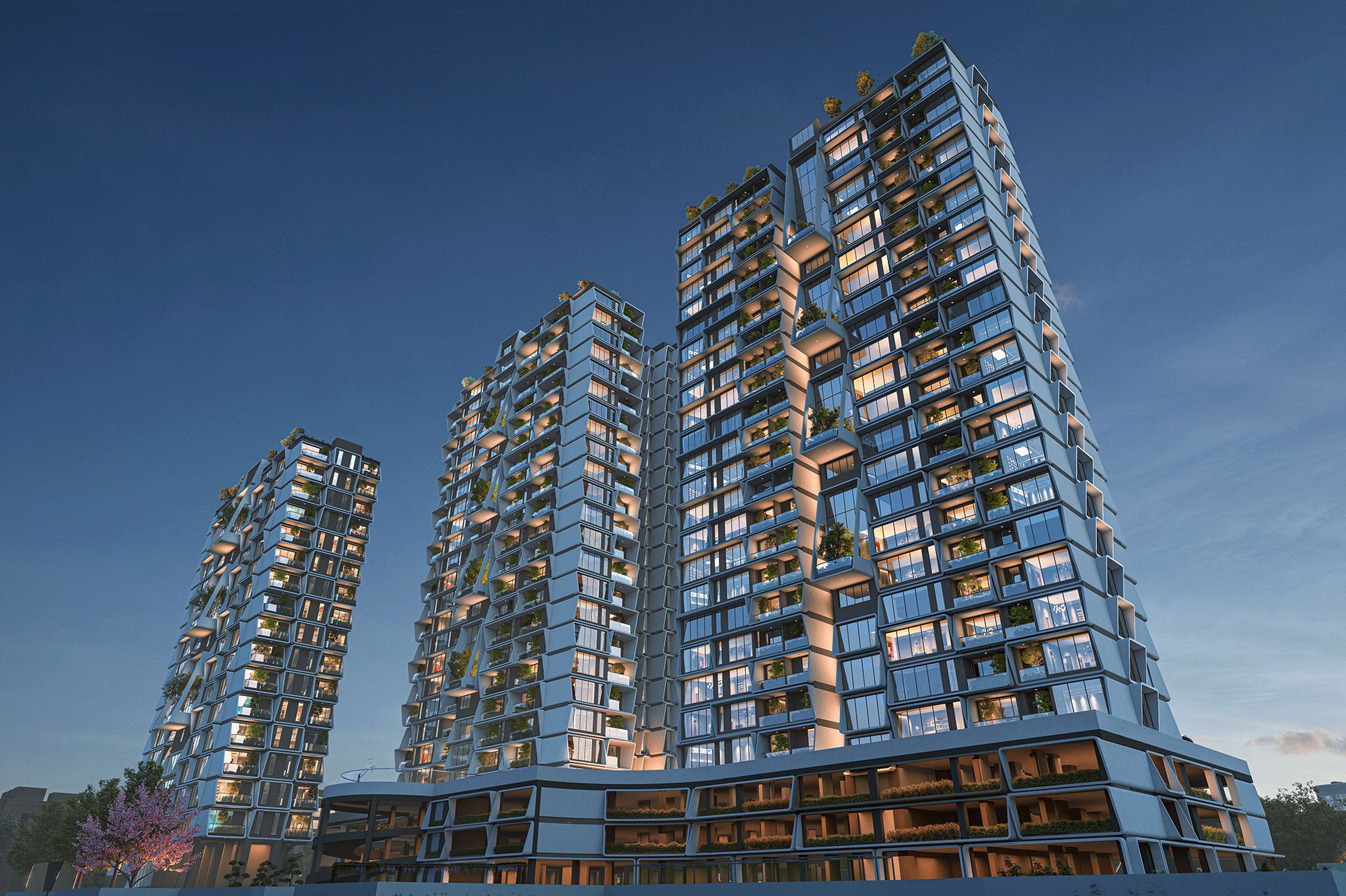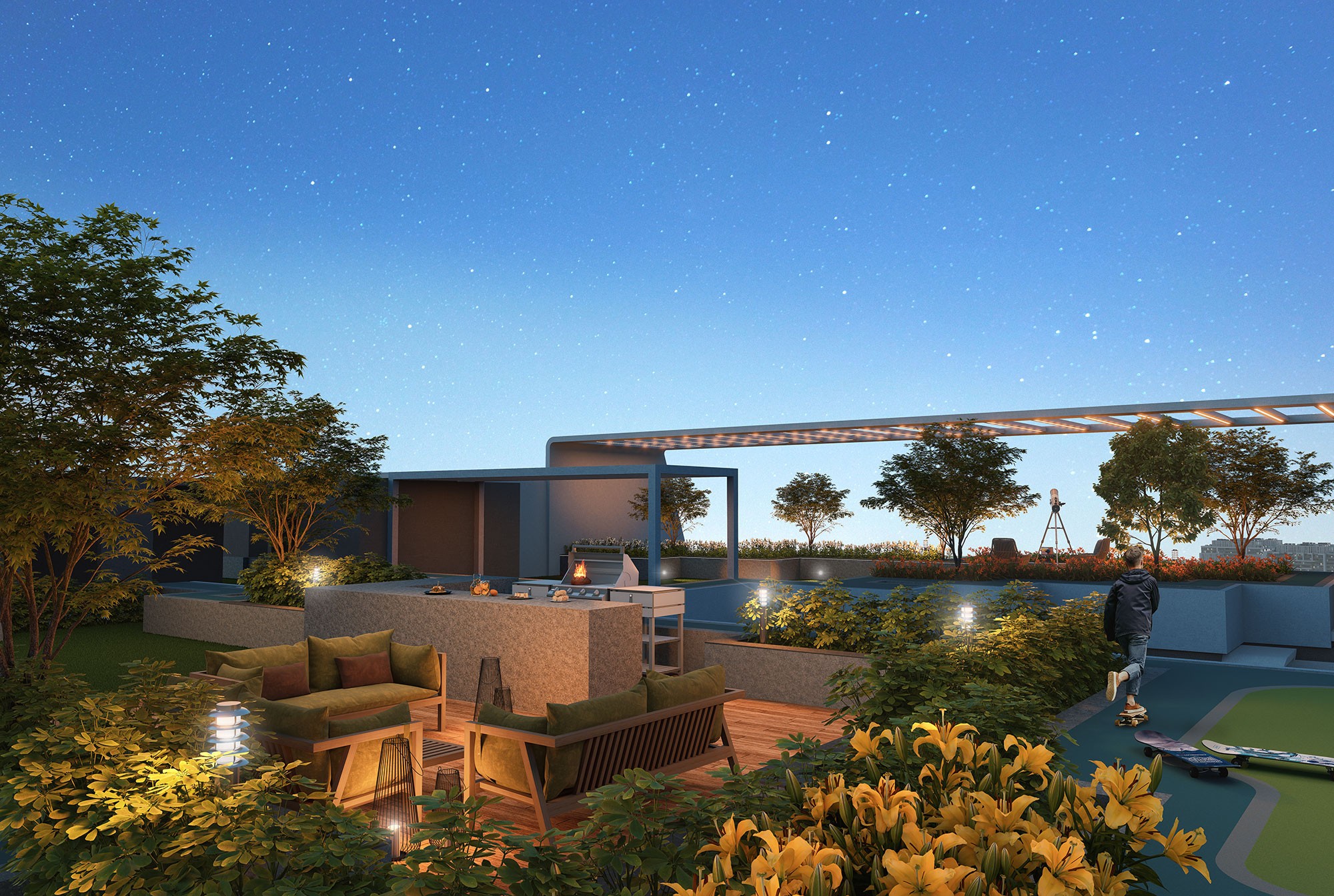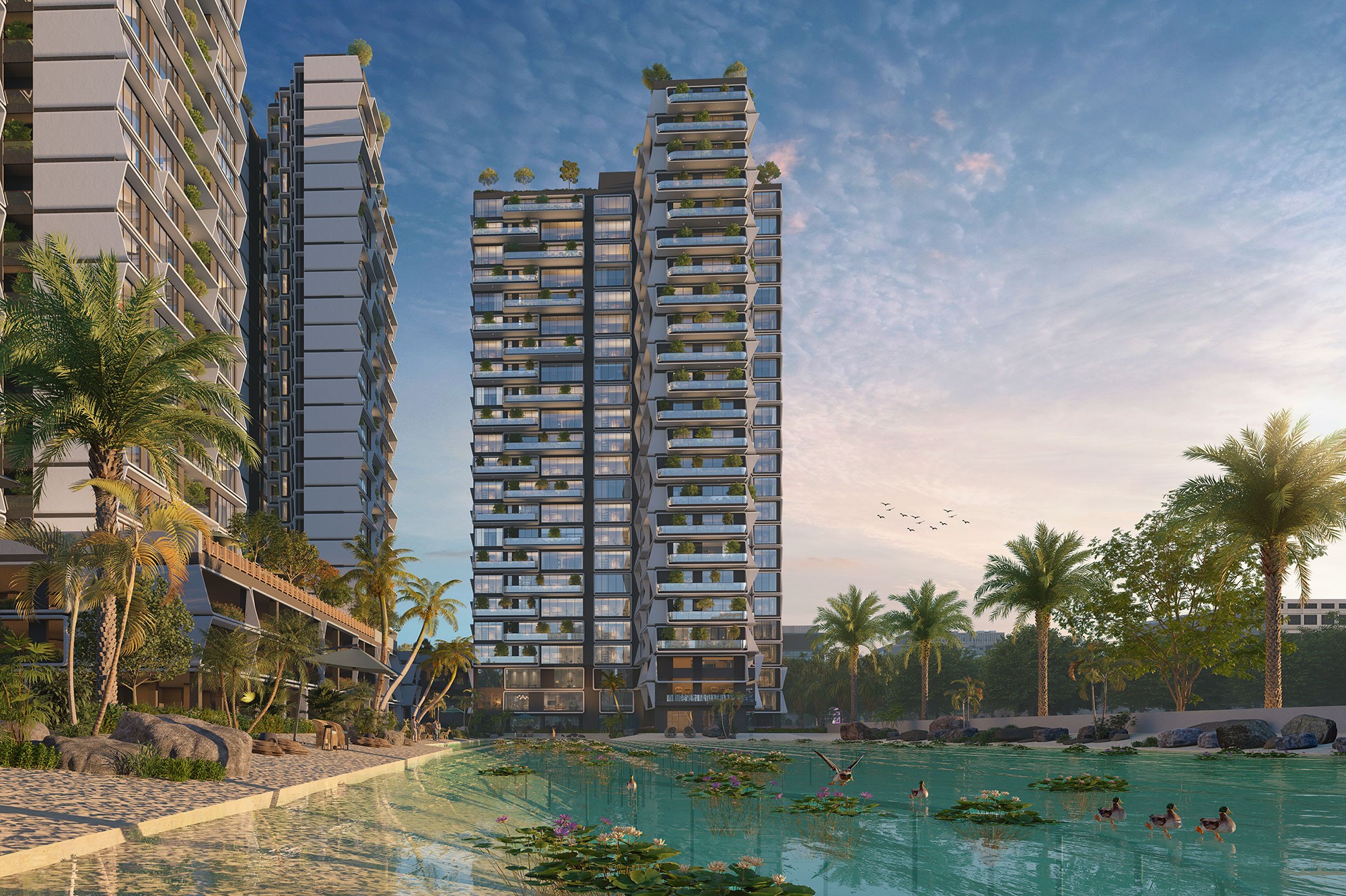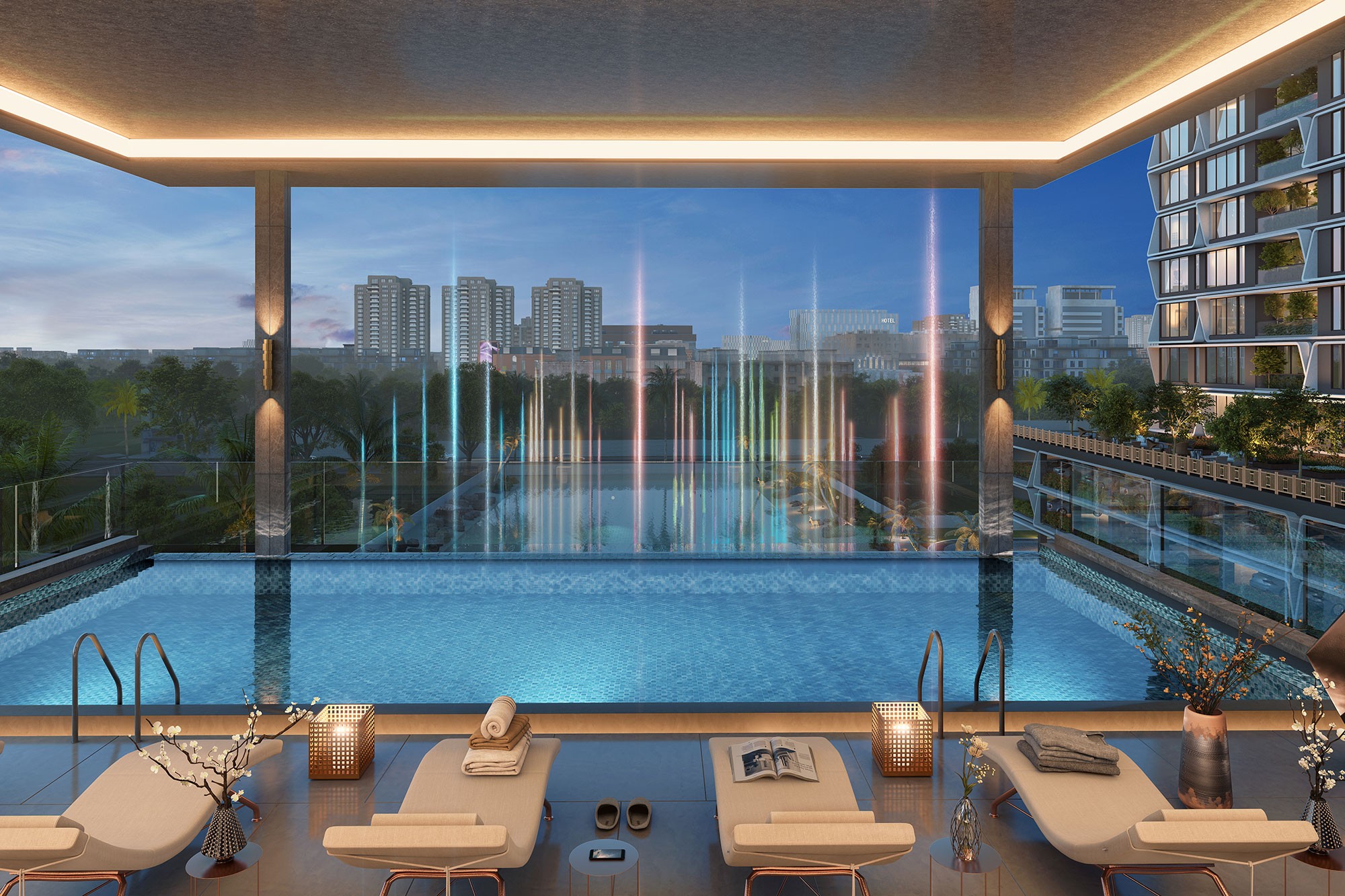 With 233 luxurious apartments spread across 4 imposing towers, this upscale development offers spacious living areas and stunning 180-degree balcony views. With more than 35 top-notch amenities, such as a stargazing terrace, an amphitheater, and a rhythmic fountain lake, the community is designed to fit the cosmopolitan lifestyles of millennials and business executives. Within the boundaries of this environmentally conscious haven, host guests on the BBQ terrace or continue your fitness routine in the cutting-edge gym.